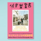 2024年11月16日(土) 15:00〜 参加費 : ¥3,500 集合場所 : 往来堂書店 キッチンミノルとカメラを持って町に出よう! カメラはスマホでも一眼でもミラーレスでもなんでもOK。 同じ風景、同じカメラなの … 続きを読む